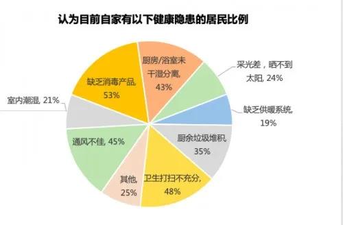 此次疫情爆發(fā)以來,各地政府紛紛出臺(tái)疫情緊急應(yīng)對(duì)措施,從城市到鄉(xiāng)村,除特殊人群幾乎無一例外,“被迫”居家隔離。借助疫情的重?fù)簦絹碓蕉嗟娜巳洪_始重視居家中生活的健康隱患。報(bào)告中顯示疫情期間家裝用戶最擔(dān)憂的是缺乏消毒產(chǎn)品下的居家健康隱患,比例達(dá)53%。
