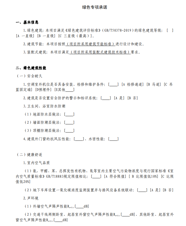 在一手房交易中,新版示范文本細(xì)化了商品房銷售信息公示的具體要求,強(qiáng)調(diào)房地產(chǎn)開發(fā)企業(yè)對(duì)項(xiàng)目?jī)?nèi)、外及設(shè)計(jì)不利因素的說明和告知義務(wù),為保護(hù)購(gòu)房者知情權(quán)保駕護(hù)航;針對(duì)商品房交易中經(jīng)常出現(xiàn)的外墻材質(zhì)、公區(qū)和室內(nèi)裝修等方面的爭(zhēng)議,新版示范文本在條款及附件中進(jìn)一步細(xì)化和明晰,強(qiáng)化房屋信息的全面、真實(shí)、有效和便于知情原則,減少不必要的交易糾紛;此外,新版示范文本還增設(shè)了綠色專項(xiàng)承諾內(nèi)容,明確項(xiàng)目滿足《綠色建筑評(píng)價(jià)標(biāo)準(zhǔn)》(GB/T50378-2019)的綠色建筑等級(jí),以及綠色建筑性能、建筑節(jié)能、裝配式建筑等相關(guān)指標(biāo)情況。