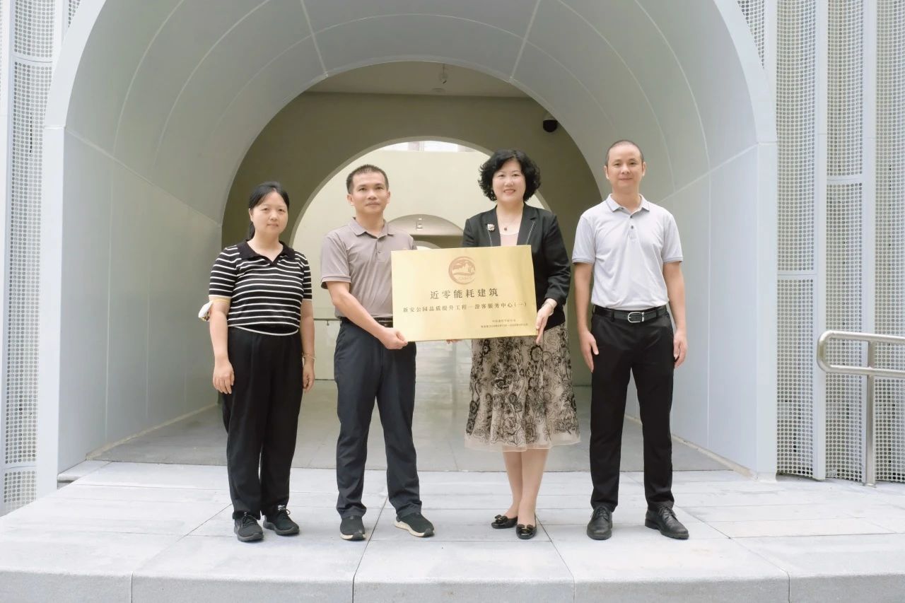 項目授牌儀式上,近零能耗建筑測評單位代表——深圳市綠色建筑協(xié)會黨支部書記、秘書長王向昱,為項目方代表——深圳市寶安區(qū)城市管理和綜合執(zhí)法局工程事務(wù)中心部長梁少武頒發(fā)“近零能耗建筑”標(biāo)識牌匾,寶安區(qū)住房和建設(shè)局黨組成員、副局長廖國輝和深圳市建設(shè)科技促進中心高級工程師周曉璐與現(xiàn)場嘉賓共同見證這一具有特殊紀念意義的時刻。