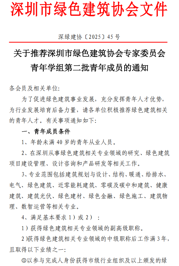 附件1:關(guān)于推薦深圳市綠色建筑協(xié)會(huì)專家委員會(huì)青年學(xué)組第二批青年成員的通知
