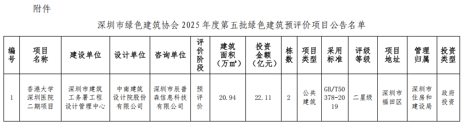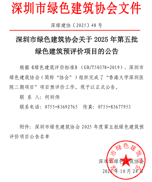深圳市綠色建筑協(xié)會(huì)關(guān)于2025年第五批綠色建筑預(yù)評(píng)價(jià)項(xiàng)目的公告