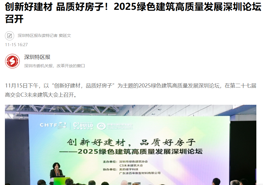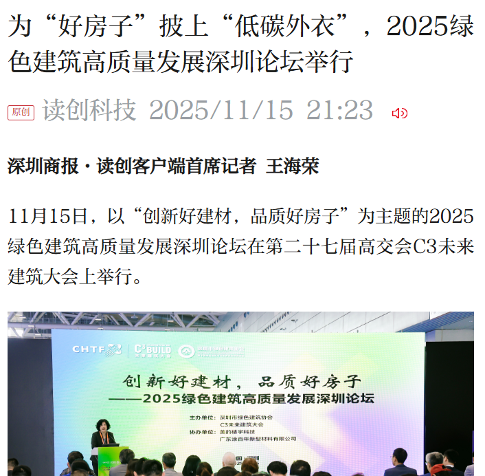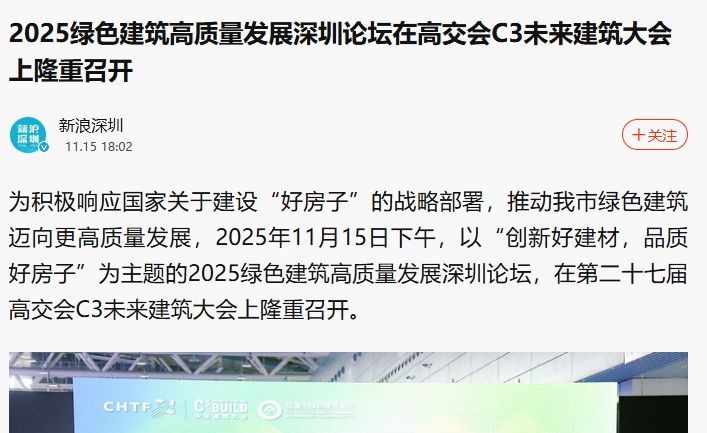 為積極響應國家關于建設“好房子”的戰(zhàn)略部署,推動我市綠色建筑邁向更高質(zhì)量發(fā)展,2025年11月15日下午,以“創(chuàng)新好建材,品質(zhì)好房子”為主題的2025綠色建筑高質(zhì)量發(fā)展深圳論壇,在第二十七屆高交會C3未來建筑大會上隆重召開。