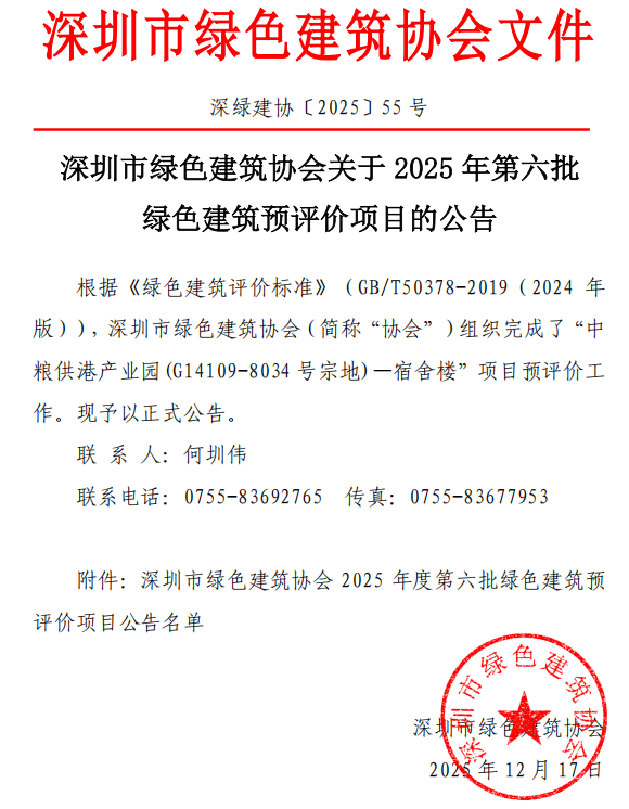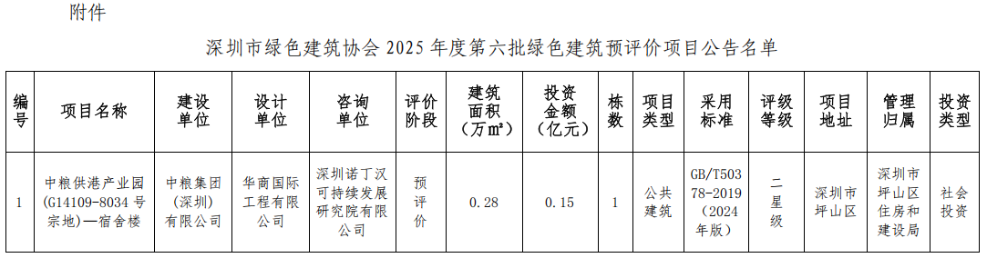 深圳市綠色建筑協(xié)會關(guān)于2025年第六批綠色建筑預評價項目的公告